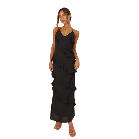 Abito Maxi Leggero con Spalline Regolabili e Volant Ð Elegante e Versatile per Climi Caldi